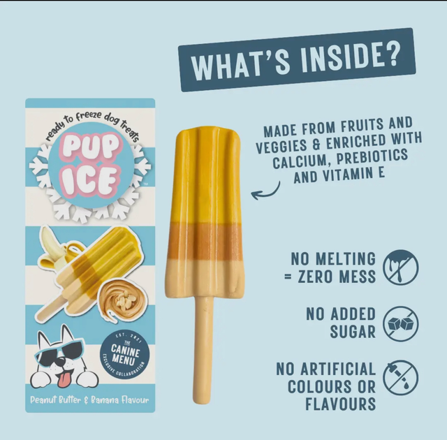 These ambient stored, ready to freeze pup ices will bring joy to your canine customers and their owners. Made from vegetables and fruit, with added calcium, prebiotics and Vitamin E, you can be confident they are both delicious and healthy for dogs.